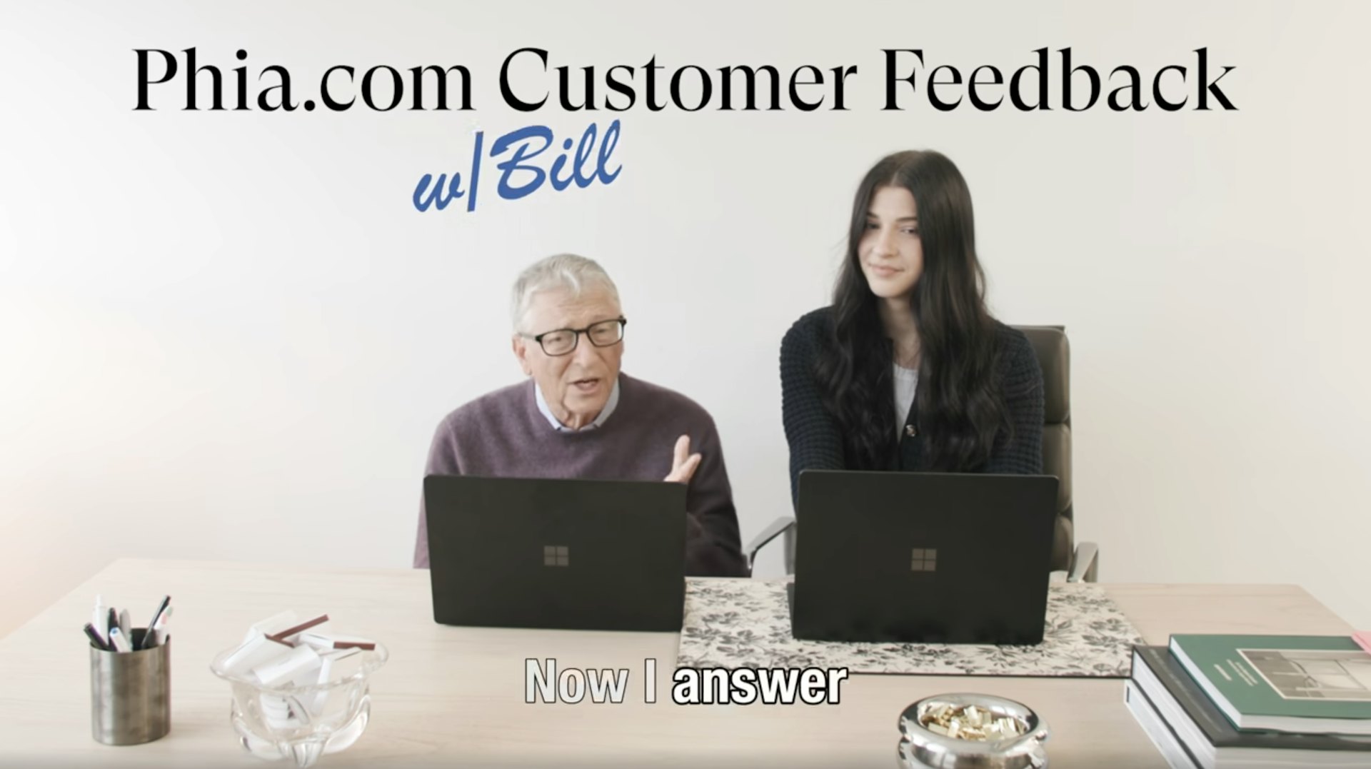 微软联合创办人盖茨(Bill Gates)近日为其女儿菲比(Phoebe Gates)创办的人工智能时尚初创企业Phia担任客户服务一职1日。