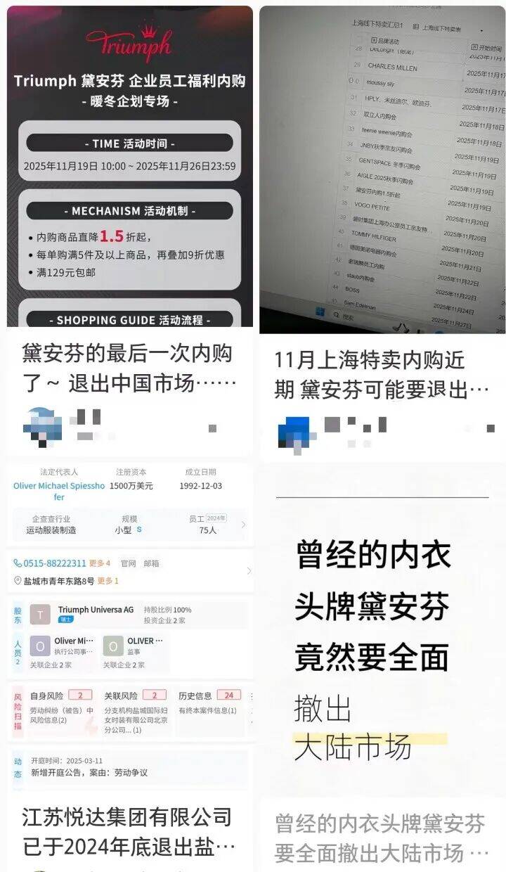 德国百年内衣品牌黛安芬(Triumph)传出将在2025年12月31日退出中国市场,该消息随即在中国引发热议,据了解,中国的多家黛安芬分店都已经接到撤店撤柜的消息。